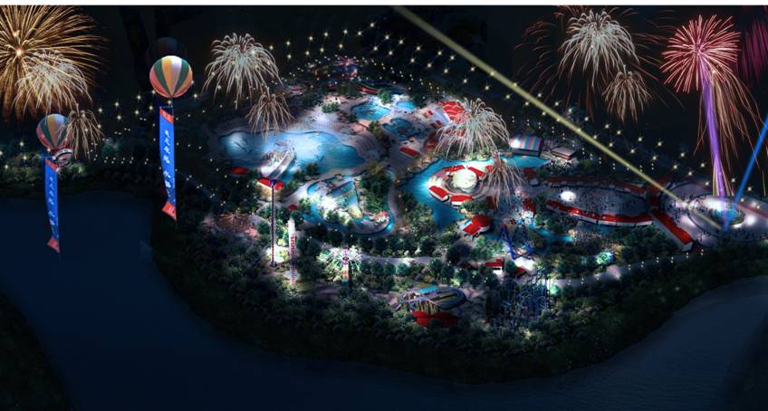 2.3功能分區(qū):根據(jù)項(xiàng)目地的場(chǎng)地情況、開(kāi)發(fā)現(xiàn)狀、發(fā)展思路等,確定功能分區(qū)為:綜合服務(wù)區(qū)——仙聚蓬萊、親子娛樂(lè)體驗(yàn)區(qū)——八寶樂(lè)園、水上娛樂(lè)區(qū)——八仙戲水、陸地冒險(xiǎn)區(qū)——龍宮歷險(xiǎn)。