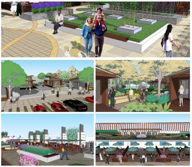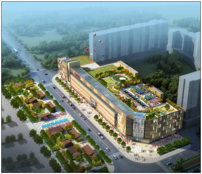 本方案設計面積為16000平方米,其中分為三塊地,一塊地為一層街邊綠地公園,一塊為商業四層屋頂花園,一塊為商業五層屋頂花園。 一層街邊綠地公園以自然生態為主要表達方式,在其中布局部分小商業建筑,建筑面積在500平方米以內,一層街邊綠地公園是銜接景觀豪庭商業建筑和三鄉鎮市民廣場過渡地段,目的是為鄉鎮市民提供一處休閑、娛樂及小商業的綠地空間。