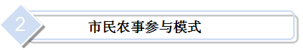 ▲可由農民提供土地,讓市民參與耕作的園地。一般是將位于近郊的農地集中規(guī)劃為若干小區(qū),分別出租給城市居民,用以種植花草、蔬菜、果樹或經(jīng)營家庭農藝,其主要目的是讓市民體驗農業(yè)生產過程,享受耕作樂趣。市民農園以休閑體驗為主,多數(shù)租用者只利用節(jié)假日到農園作業(yè),平時交由農地提供者代管。根據(jù)使用對象的不同,該模式分為家庭農園、兒童農園、銀發(fā)農園3種類型。