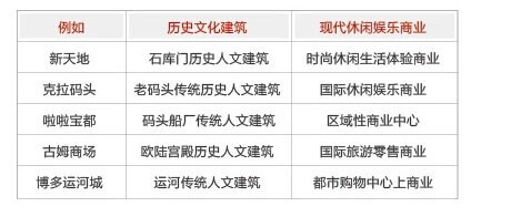 1)重現特色人文建筑空間(功能和空間)的方式:保留修復,帶給消費者建筑的歷史感;創新融合,帶給消費者建筑的情景感